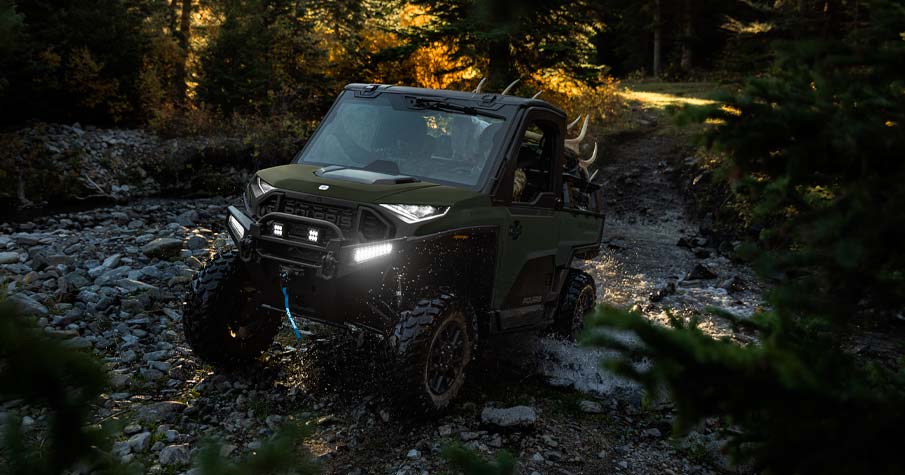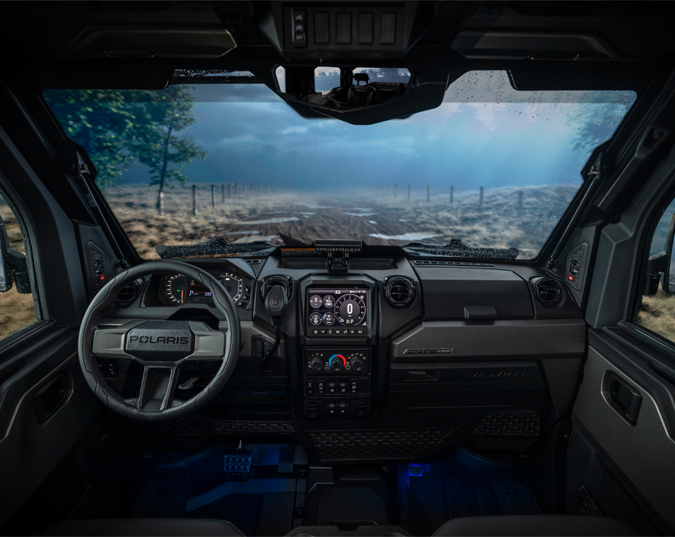 - Sistema de Cabina instalado de Fábrica con Puertas Eléctricas, Techo, Parabrisas Abatible, Ventana Trasera, Espejo Retrovisor, Limpiaparabrisas y Materiales de Aislamiento Acústico, Calefacción, aire acondicionado, descongelación y recirculación instalados de fábrica con 5 configuraciones diferentes de flujo de aire, Limitador de Velocidad controlado por RIDE COMMAND, Sistema de carga de 140 amp, sistema eléctrico Polaris PULSE (cofre y techo de 3 posiciones cada uno), cargador USB, cargador de mantenimiento, toma de accesorios de 12 voltios y puerto para carga de batería de mantenimiento, Winch Polaris Pro Series con Cuerda Sintética, Auto Stop, Control Remoto Inalámbrico y Rapid Rope Recovery, Gran Defensa de Acero, Placa Protectora Inferior Completa, Anillos en D en Defensa y Barra Superior